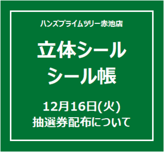 【プライムツリー赤池店】12月16日(火)「立体シール・シール帳」 購入時間帯抽選当選番号のご案内